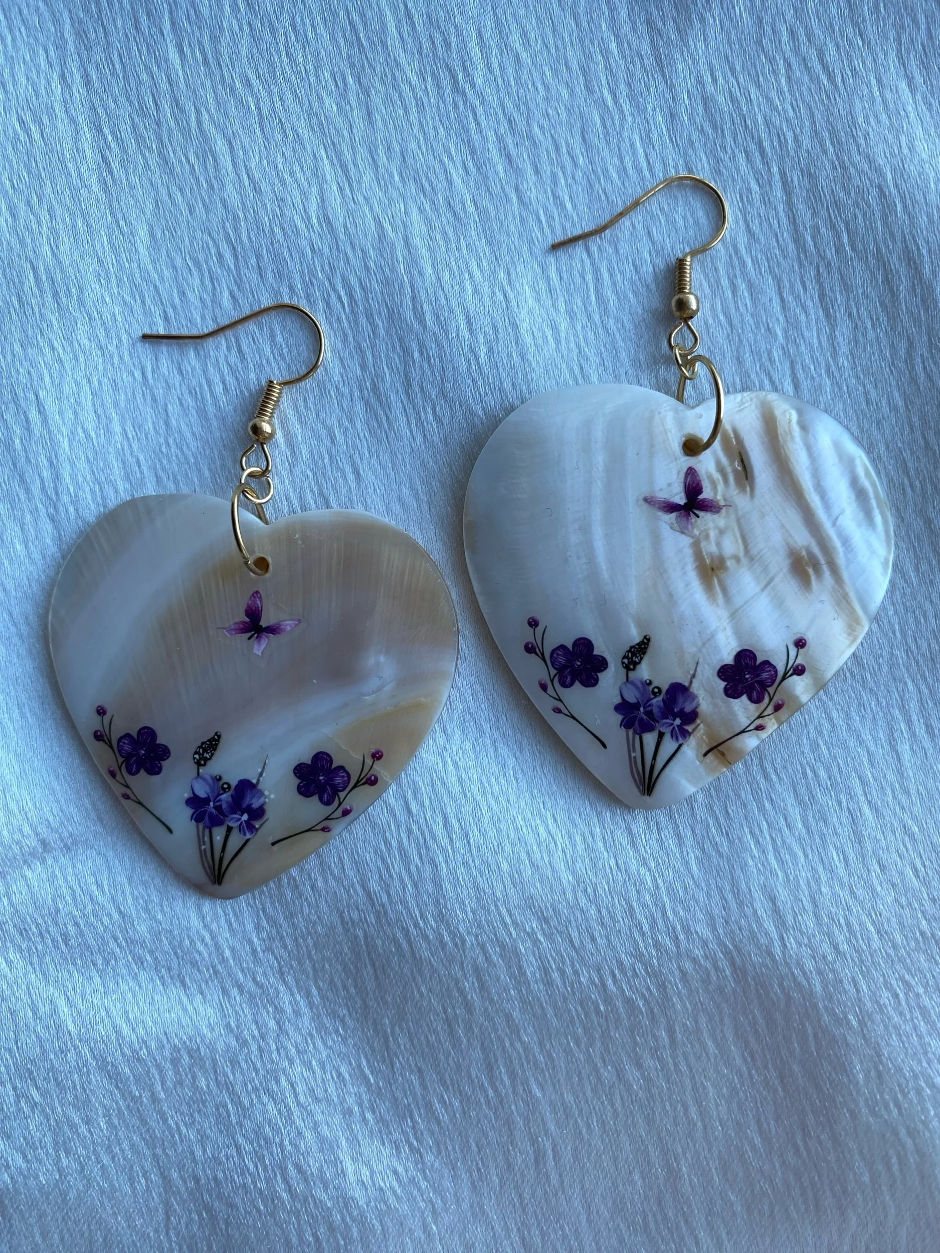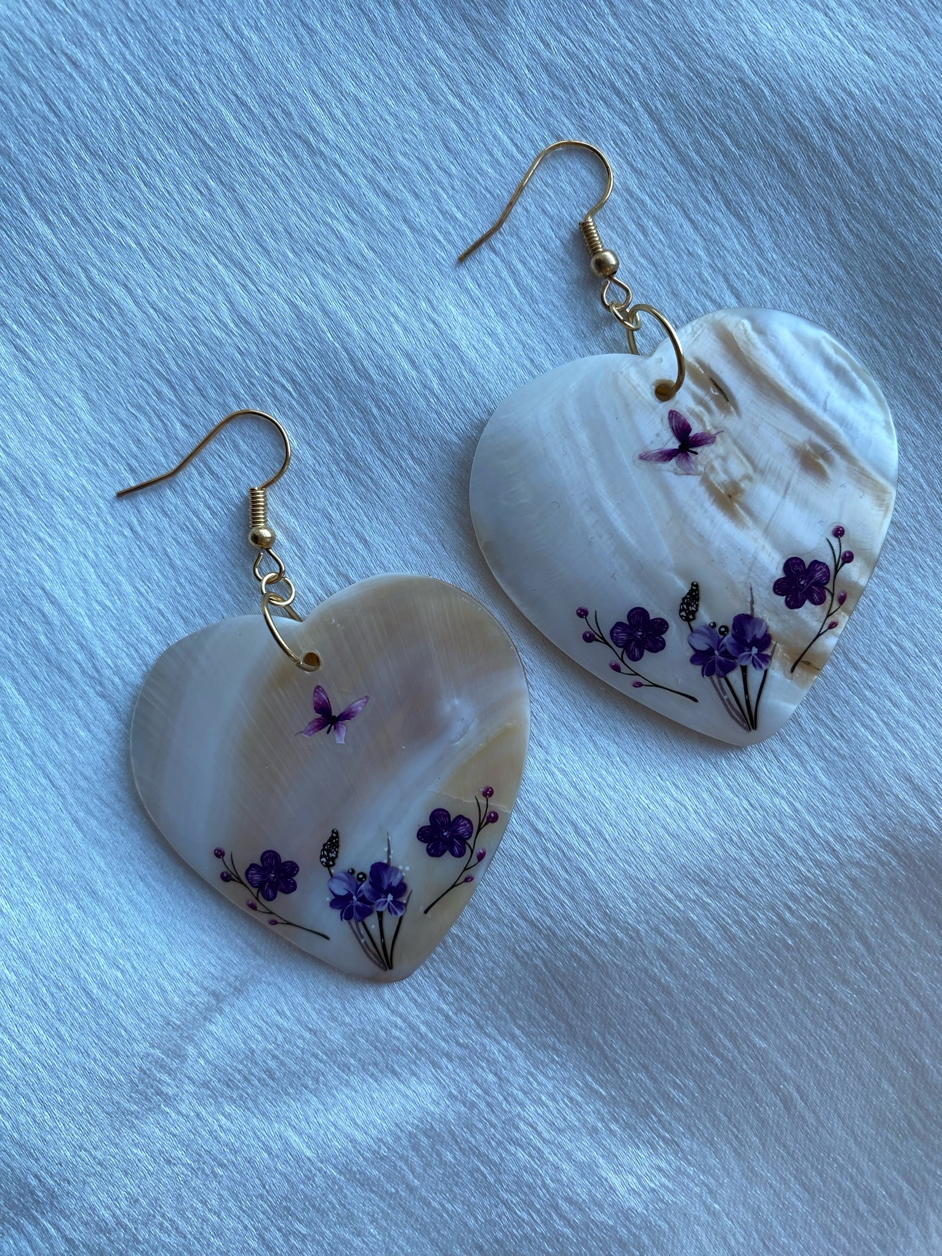 Emma & Elijah’s Work › E&E’s Purple Floral Shells Image 1 of 2 Image 2 of 2 E&E’s Purple Floral Shells Sale Price: $40.00 Original Price: $50.00 3 inches long (including hook)1.5-1.75 inches wide Shells Gold findings Purchase Added! 3 inches long (including hook)1.5-1.75 inches wide Shells Gold findings