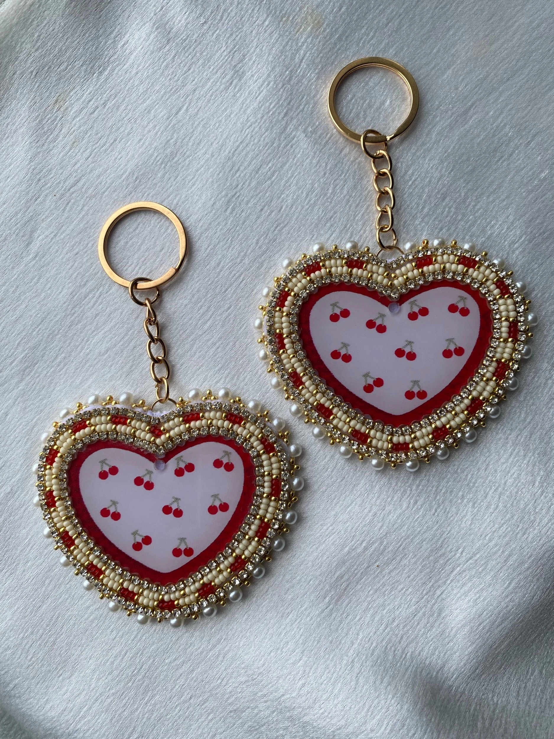 Emma & Elijah’s Work › E&E’s Cherry Keychain Image 1 of 1 E&E’s Cherry Keychain $25.00 4.5 inches long 3 inches wide Acrylic cabochon Size 11 seed beads 4mm pearl beadsGold findings White vinyl backing Quantity: Purchase Added! 4.5 inches long 3 inches wide Acrylic cabochon Size 11 seed beads 4mm pearl beadsGold findings White vinyl backing