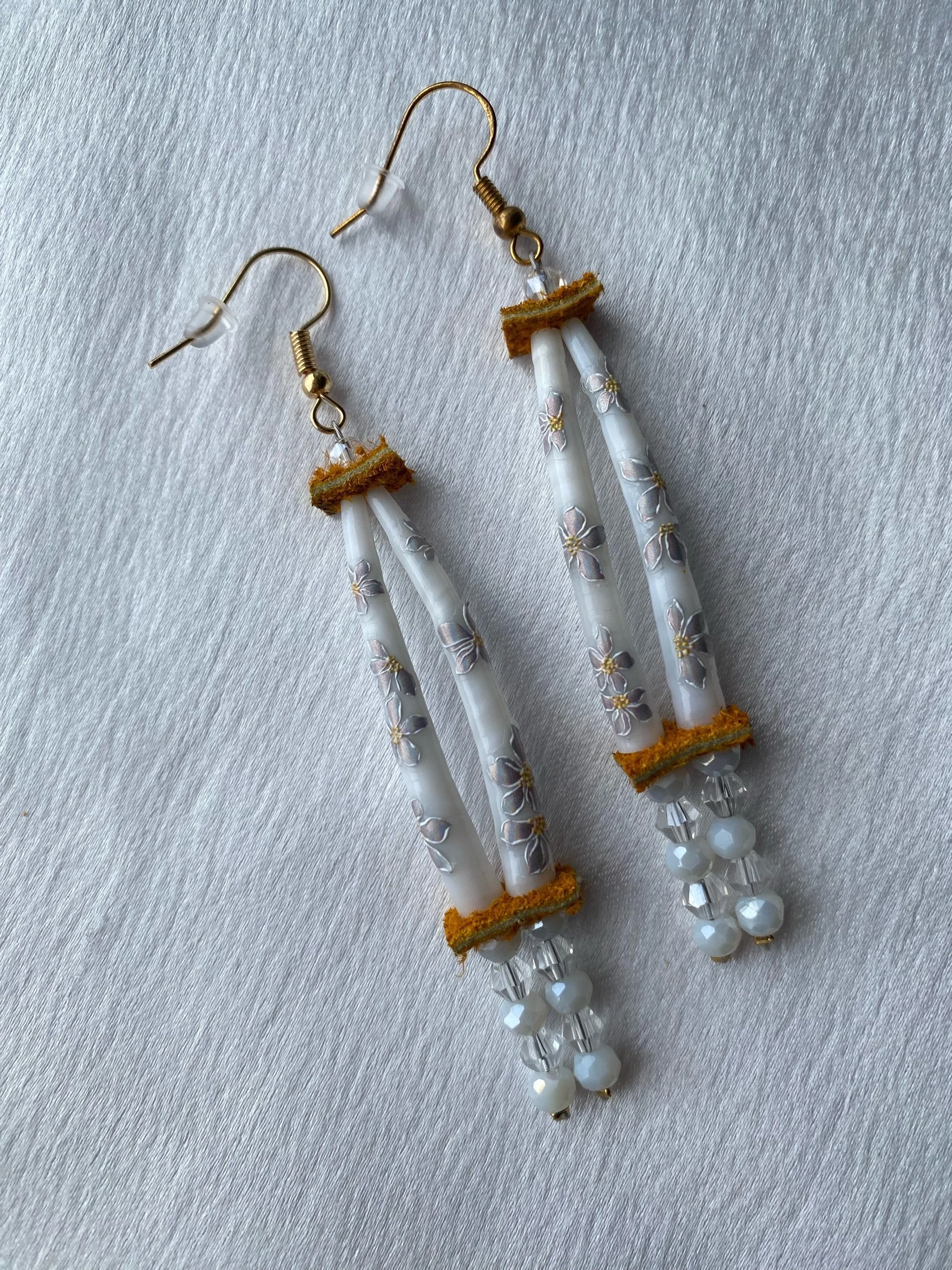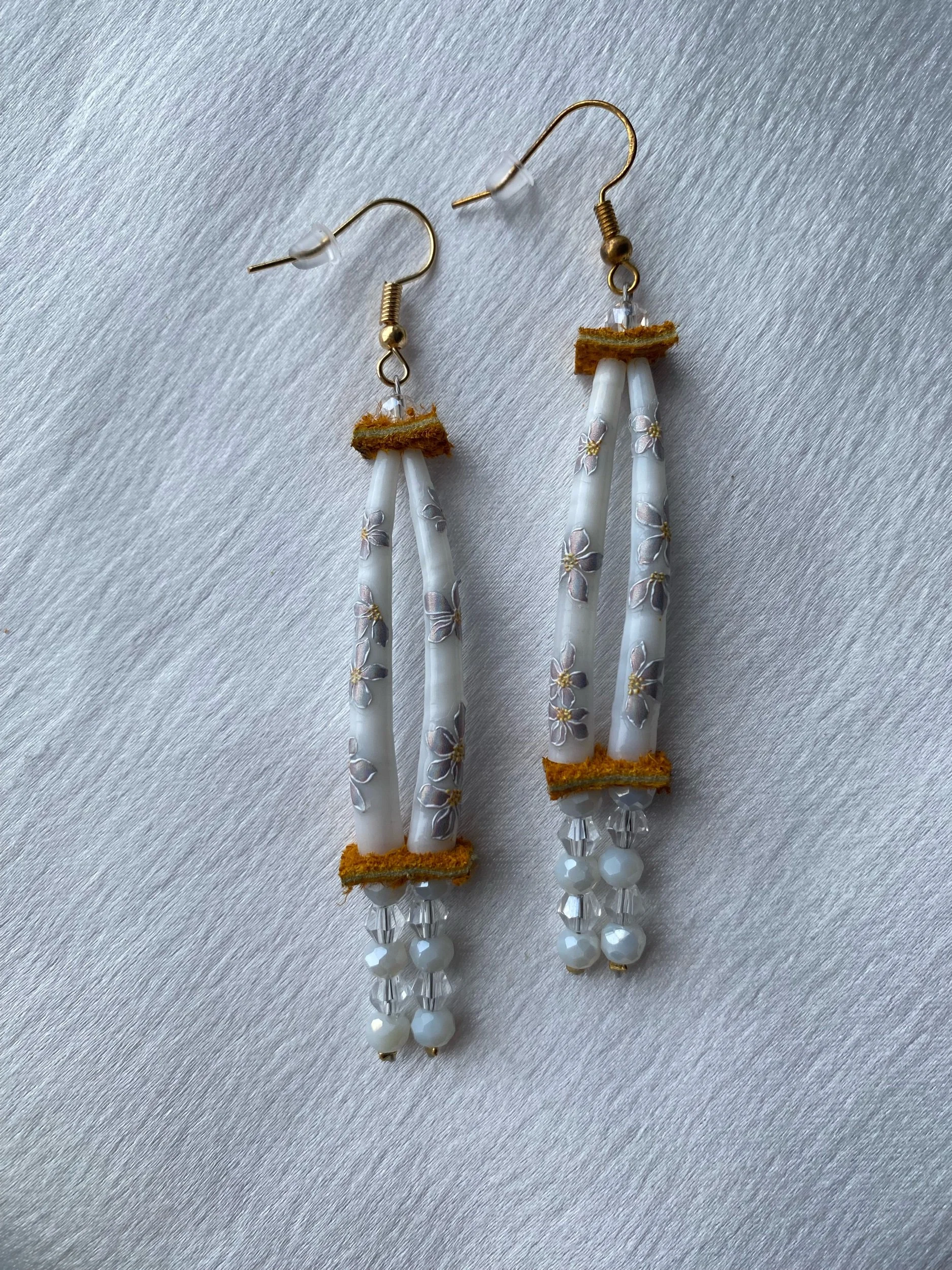 Emma & Elijah’s Work › E&E’s Purple Flower Dentalium Earrings Image 1 of 2 Image 2 of 2 E&E’s Purple Flower Dentalium Earrings $90.00 sold out 3.5 inches long 0.5 inch wideGold findings 4mm preciosa crystal beads Dentalium Hide Wire Sold Out Added! 3.5 inches long 0.5 inch wideGold findings 4mm preciosa crystal beads Dentalium Hide Wire