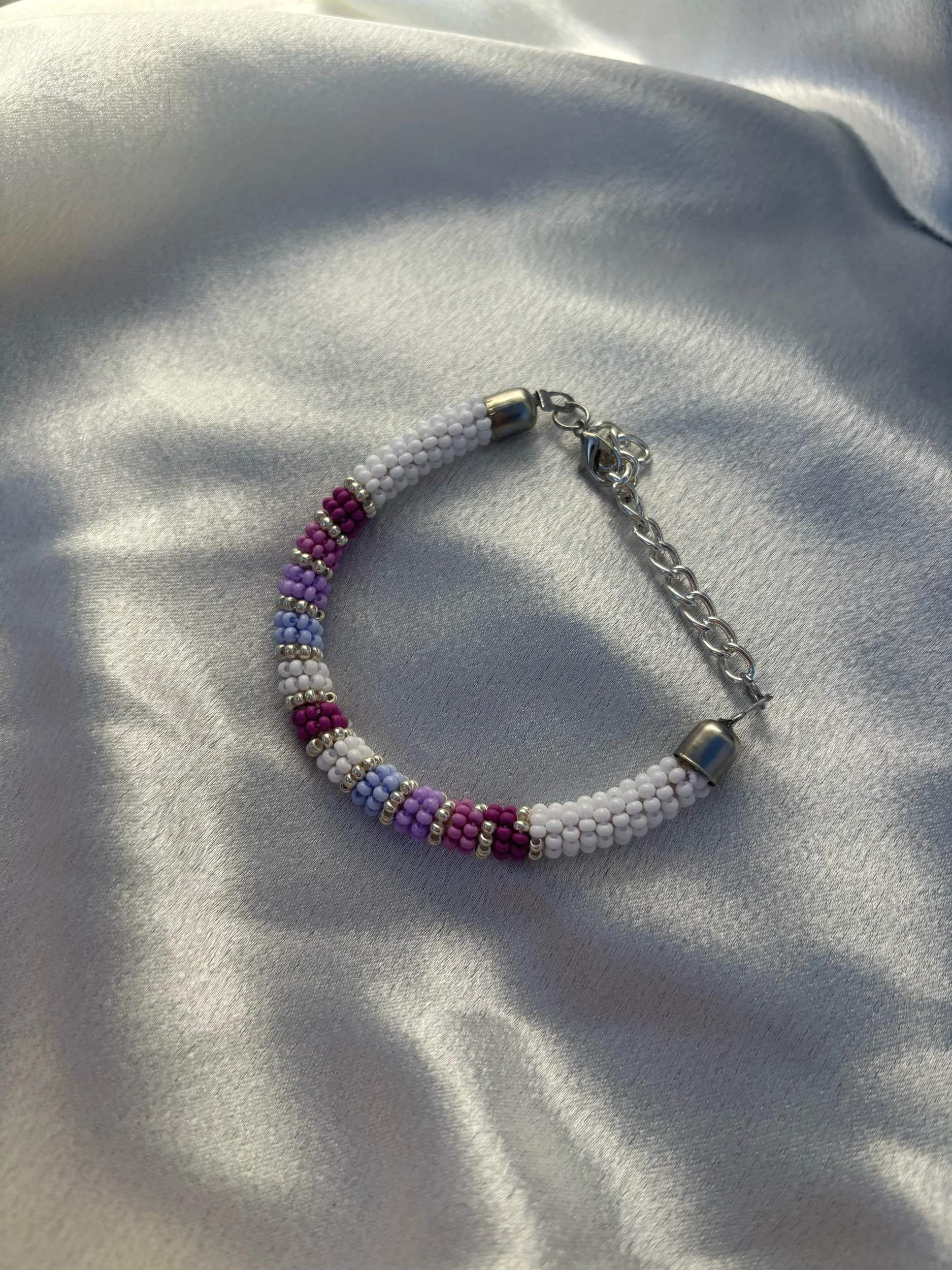 Lakota's Work › Lakota’s Beaded Bracelet- Purple/Silver Image 1 of 1 Lakota’s Beaded Bracelet- Purple/Silver $25.00 •5.3 inch beaded length2.5 inch of adjustable chainSize 10/11 seed beadsSilver plated hooks & findings Purchase Added! •5.3 inch beaded length2.5 inch of adjustable chainSize 10/11 seed beadsSilver plated hooks & findings