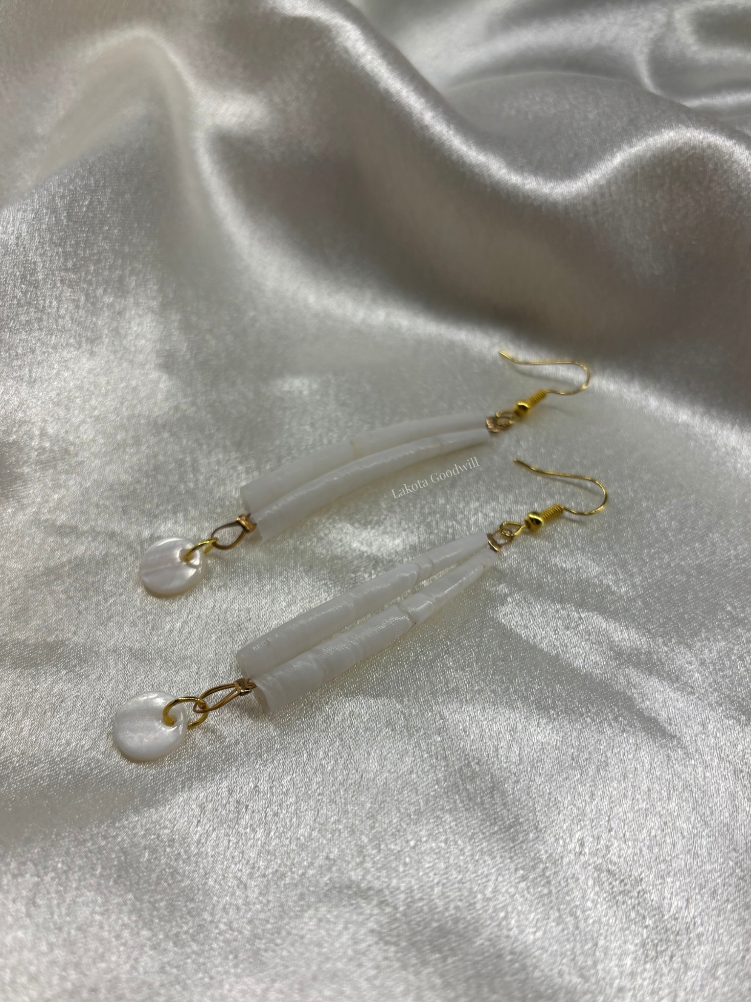 Lakota's Work › Simple Dentalium Earrings - Gold Image 1 of 1 Simple Dentalium Earrings - Gold $40.00 • 3 Inches LongGold Plated Hooks & FindingsMother of Pearl Shells Purchase Added! • 3 Inches LongGold Plated Hooks & FindingsMother of Pearl Shells